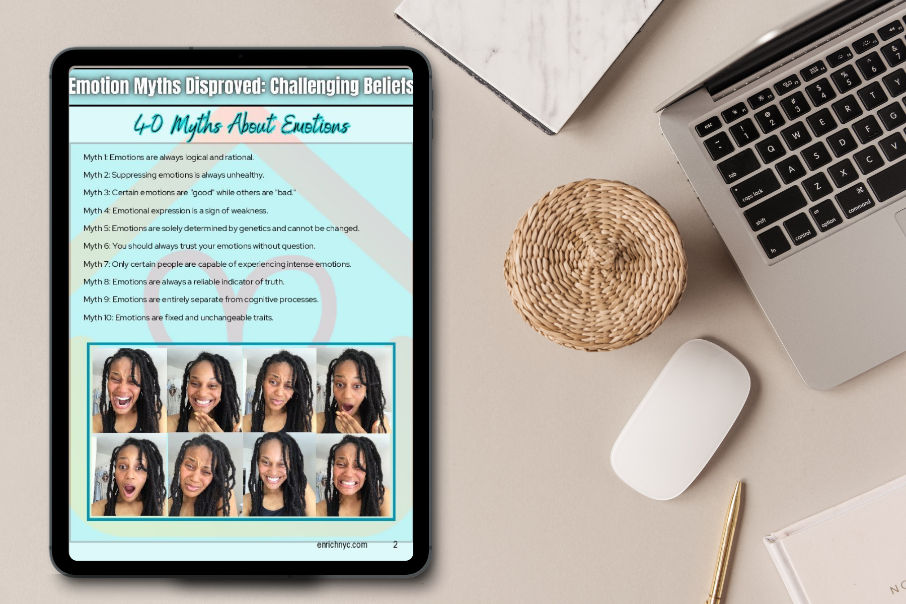 In this exercise, you will review a list of 40 common myths about emotions. You will then embark on a reflective journey, examining each myth and investigating your personal beliefs and experiences related to it. Through introspection and critical thinking, you will evaluate the validity of these myths and consider how they may have influenced your perception and expression of emotions.